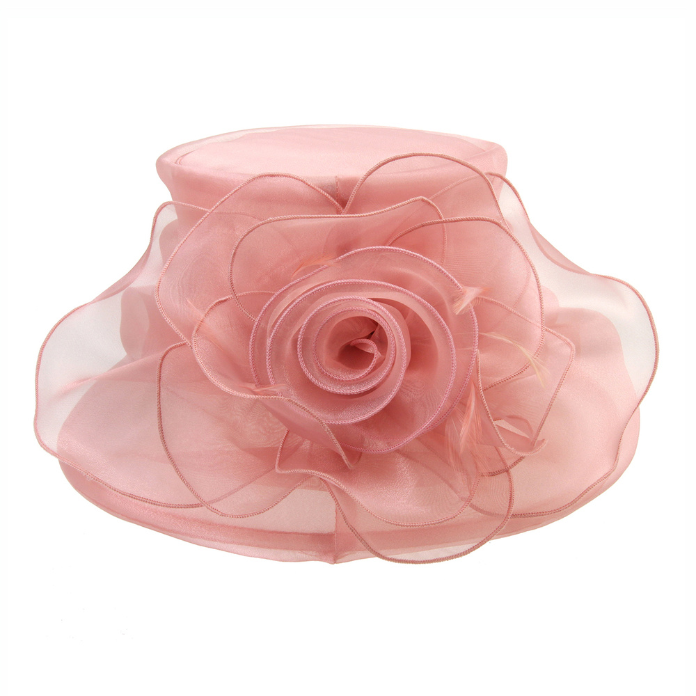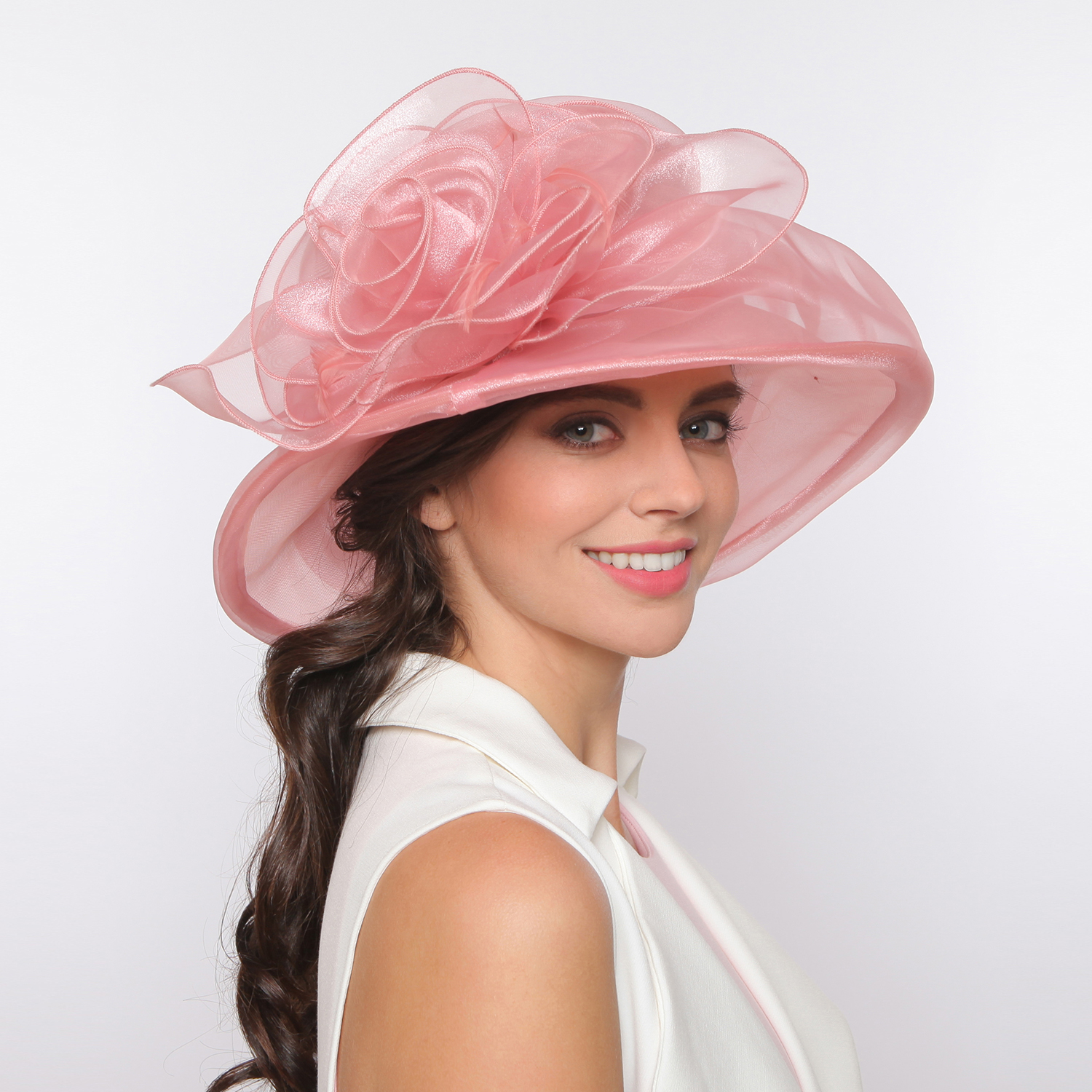 MEDIUM BRIM RUFFLE ORGANZA HAT W/ FLORAL CENTER