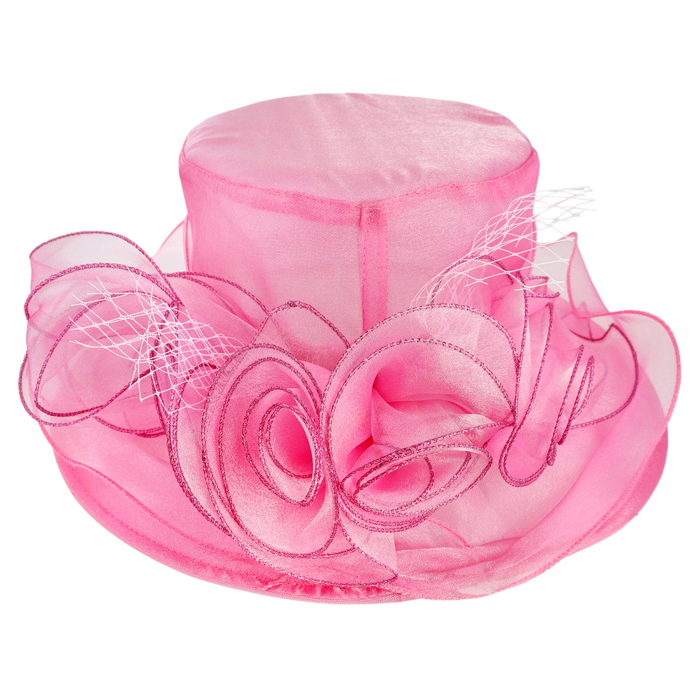 Medium Brim Organza Hat With Rose Cluster