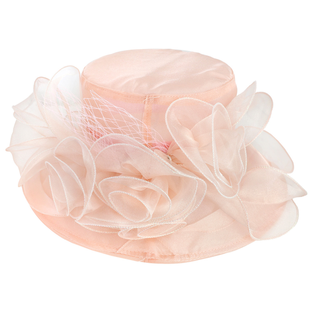 MEDIUM BRIM ORGANZA HAT WITH ROSE CLUSTER