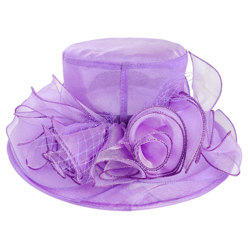 MEDIUM BRIM ORGANZA HAT WITH ROSE CLUSTER