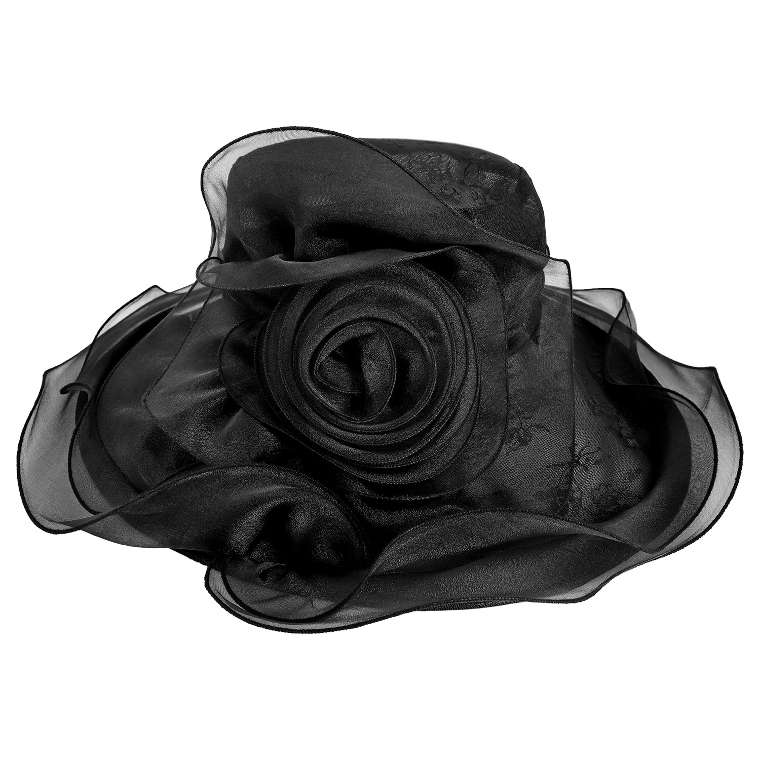 LARGE BRIM FLORAL LACE ORANZA HAT WITH BIG ROSE