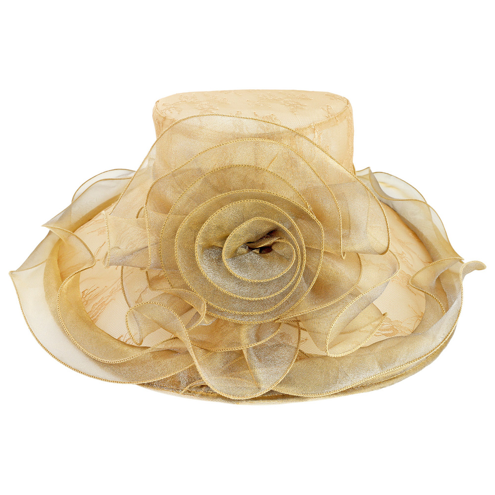 Large Brim Floral Lace Oranza Hat With Big Rose