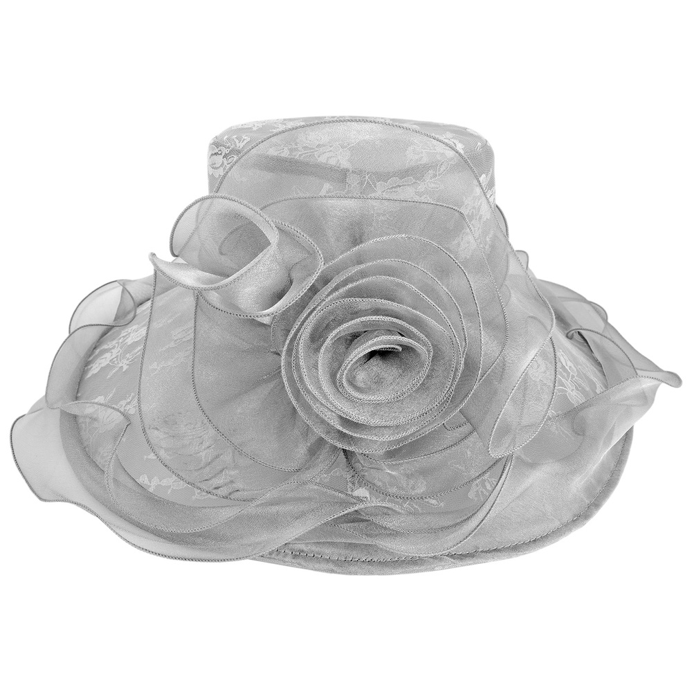 LARGE BRIM FLORAL LACE ORANZA HAT WITH BIG ROSE