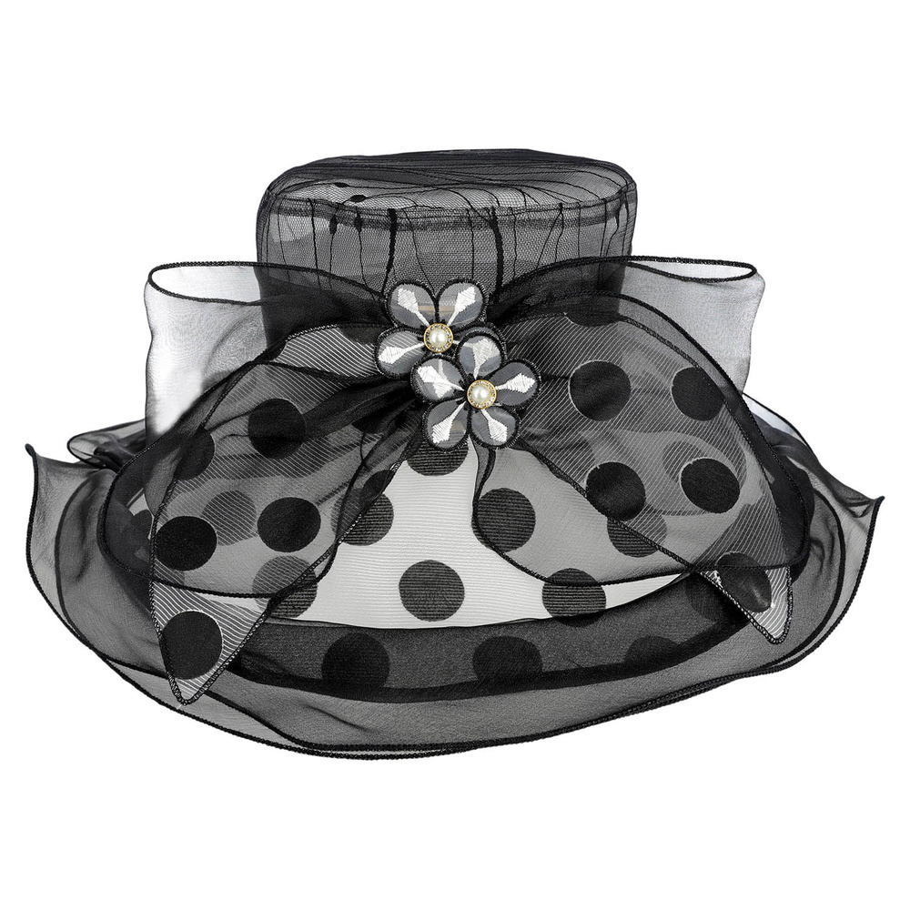 Kentucky Derby Church Tea Party Organza Polka Dot And Bow Flat Top Hat