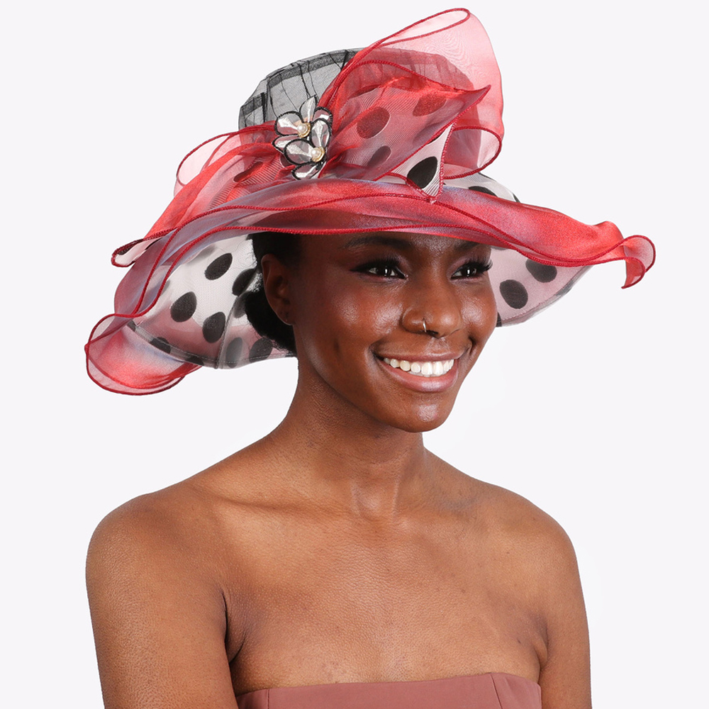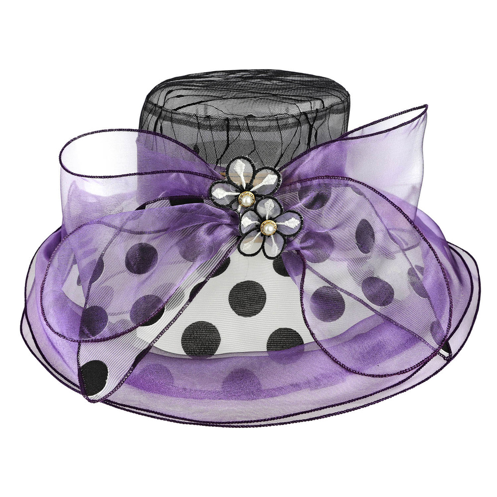 Kentucky Derby Church Tea Party Organza Polka Dot And Bow Flat Top Hat