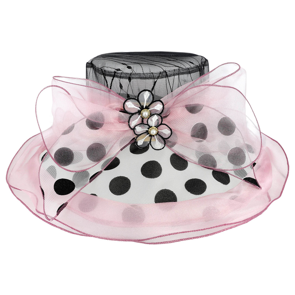 Kentucky Derby Church Tea Party Organza Polka Dot And Bow Flat Top Hat