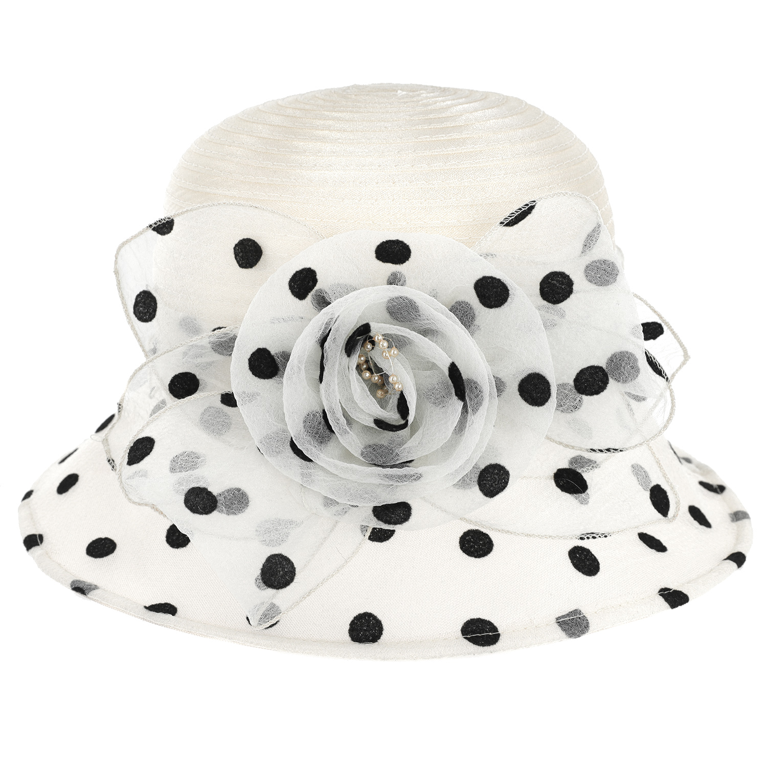 Kentucky Derby Southern Style Floral Rose Bud Polka Dot Organza Cloche Hat