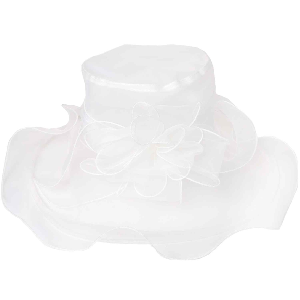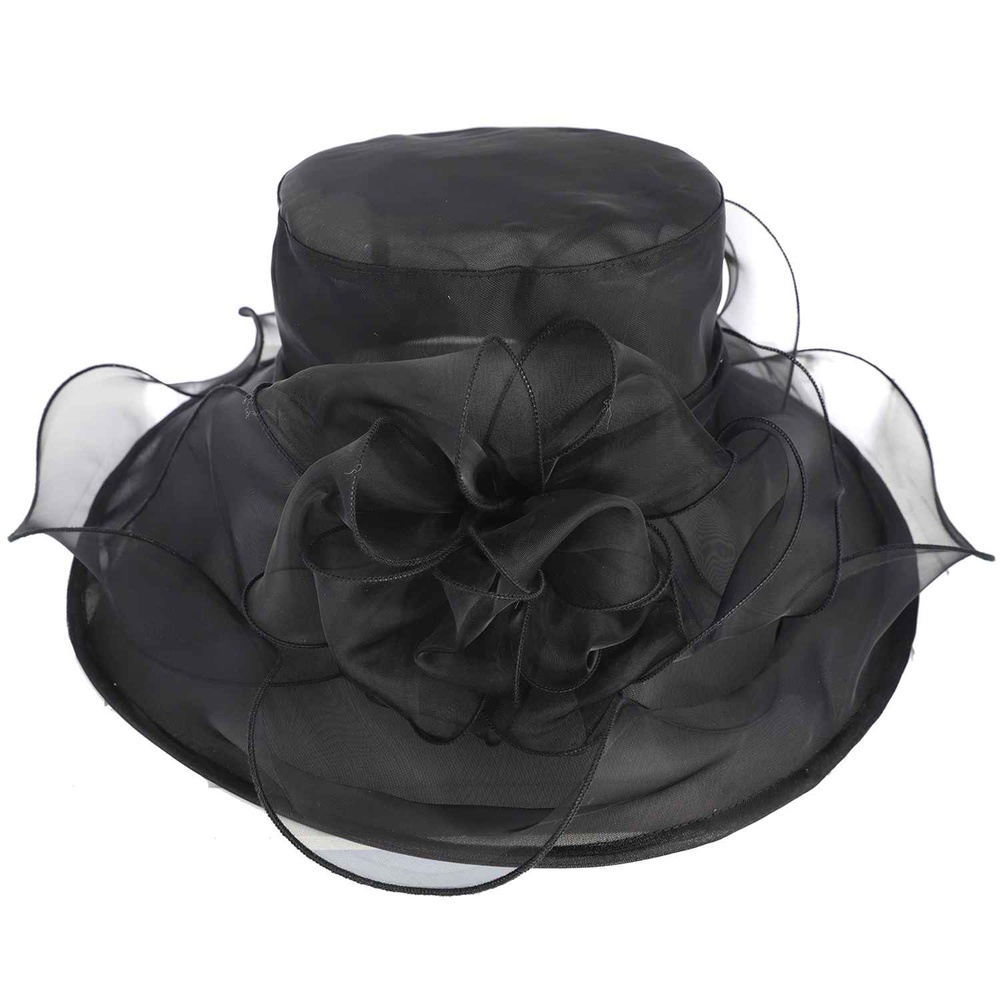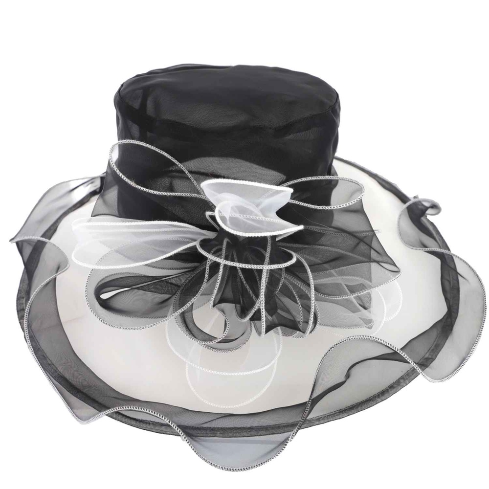 Floral Ribbon Dressy Contrast Trim Organza Hat