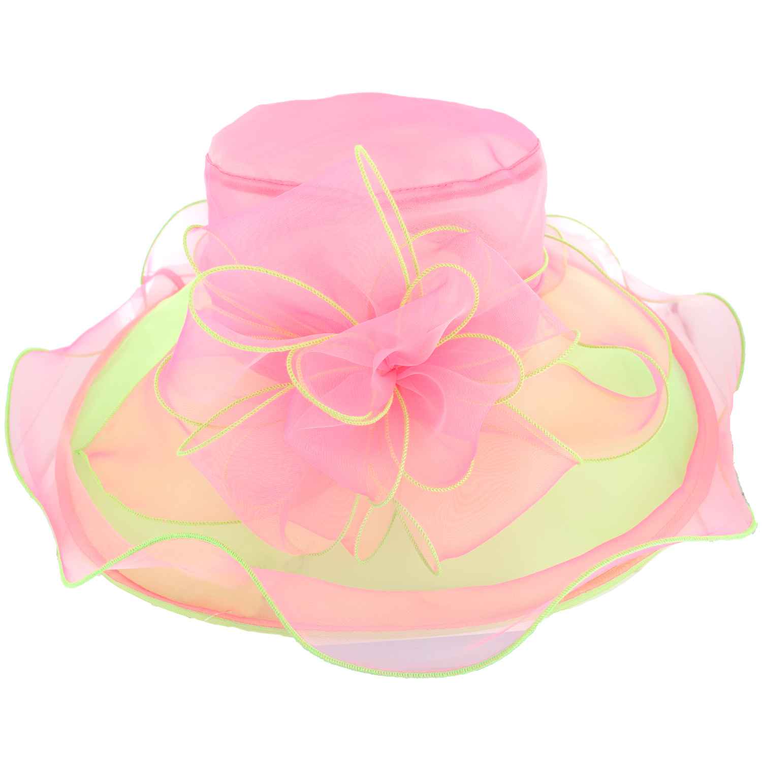 Floral Ribbon Dressy Contrast Trim Organza Hat