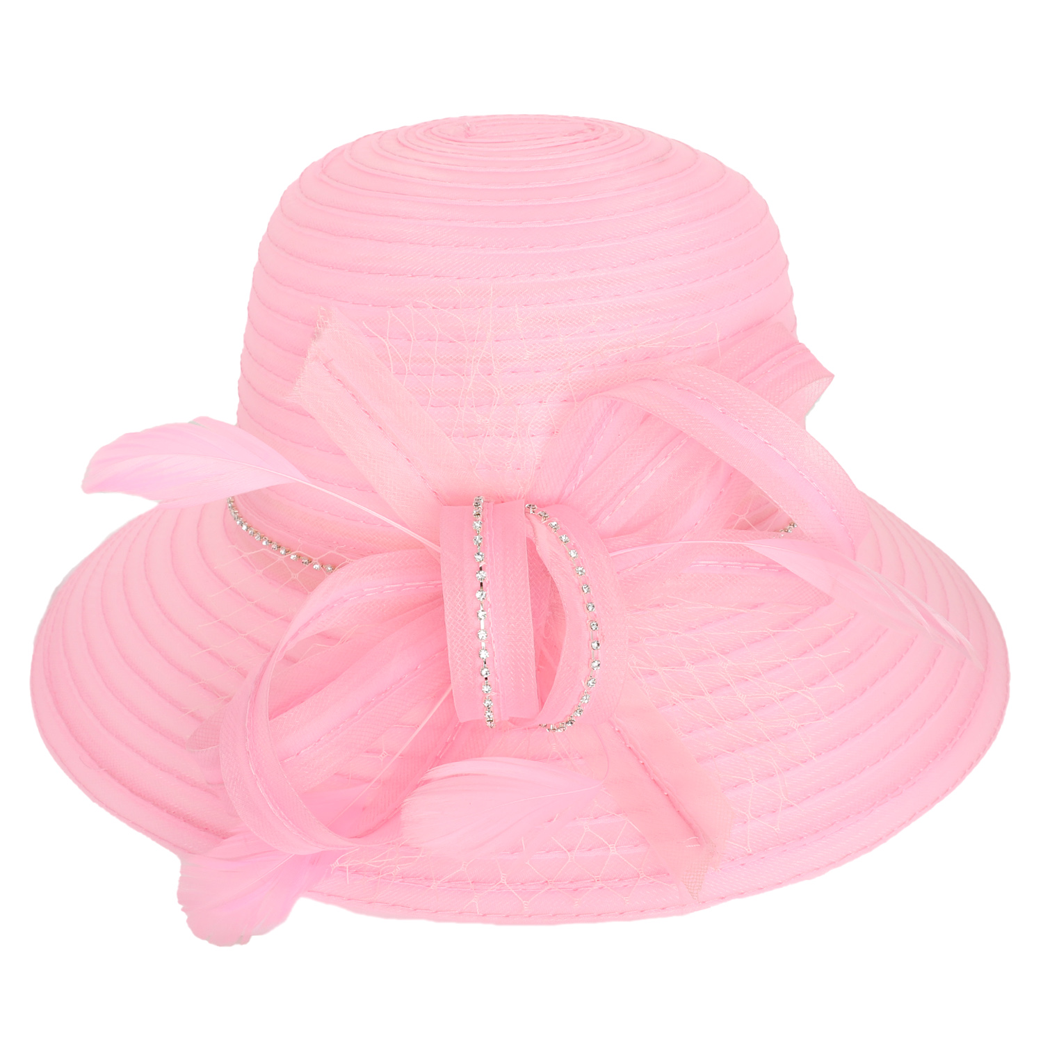 FEATHERED RHINESTONE LACED ORGANZA RIBBON CLOCHE BRAID HAT