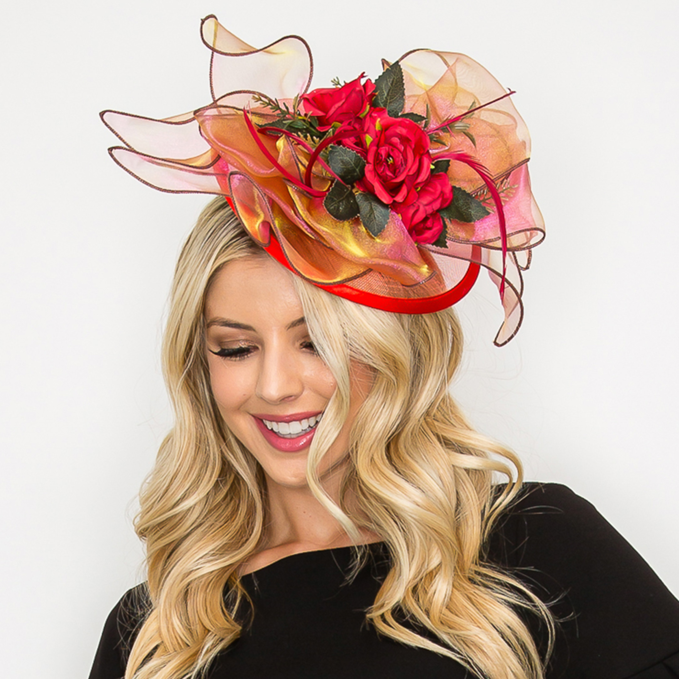 ORGANZA HAT WITH DETACHABLE FASTENED FLORAL FASCINATOR WITH CLIP AND SEPARATE HEADBAND