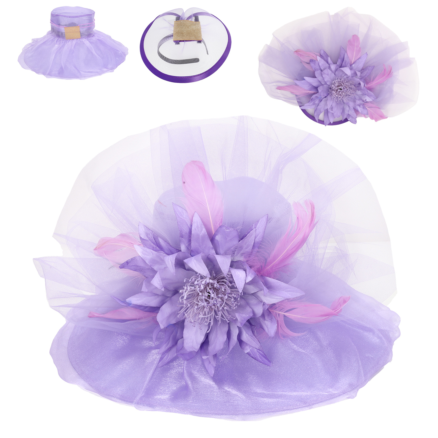 ORGANZA HAT WITH DETACHABLE FASTENED FLORAL FASCINATOR WITH CLIP AND SEPARATE HEADBAND