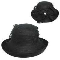 ORGANZA HAT WITH DETACHABLE FASTENED FLORAL FASCINATOR WITH CLIP AND SEPARATE HEADBAND