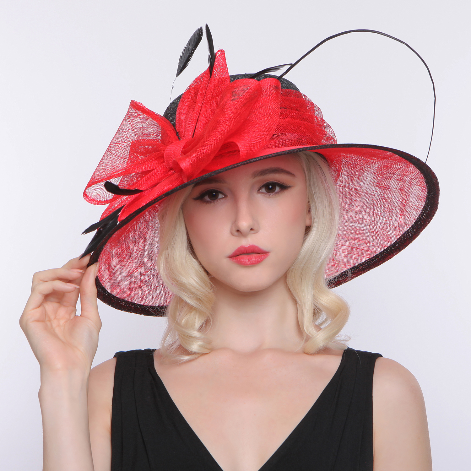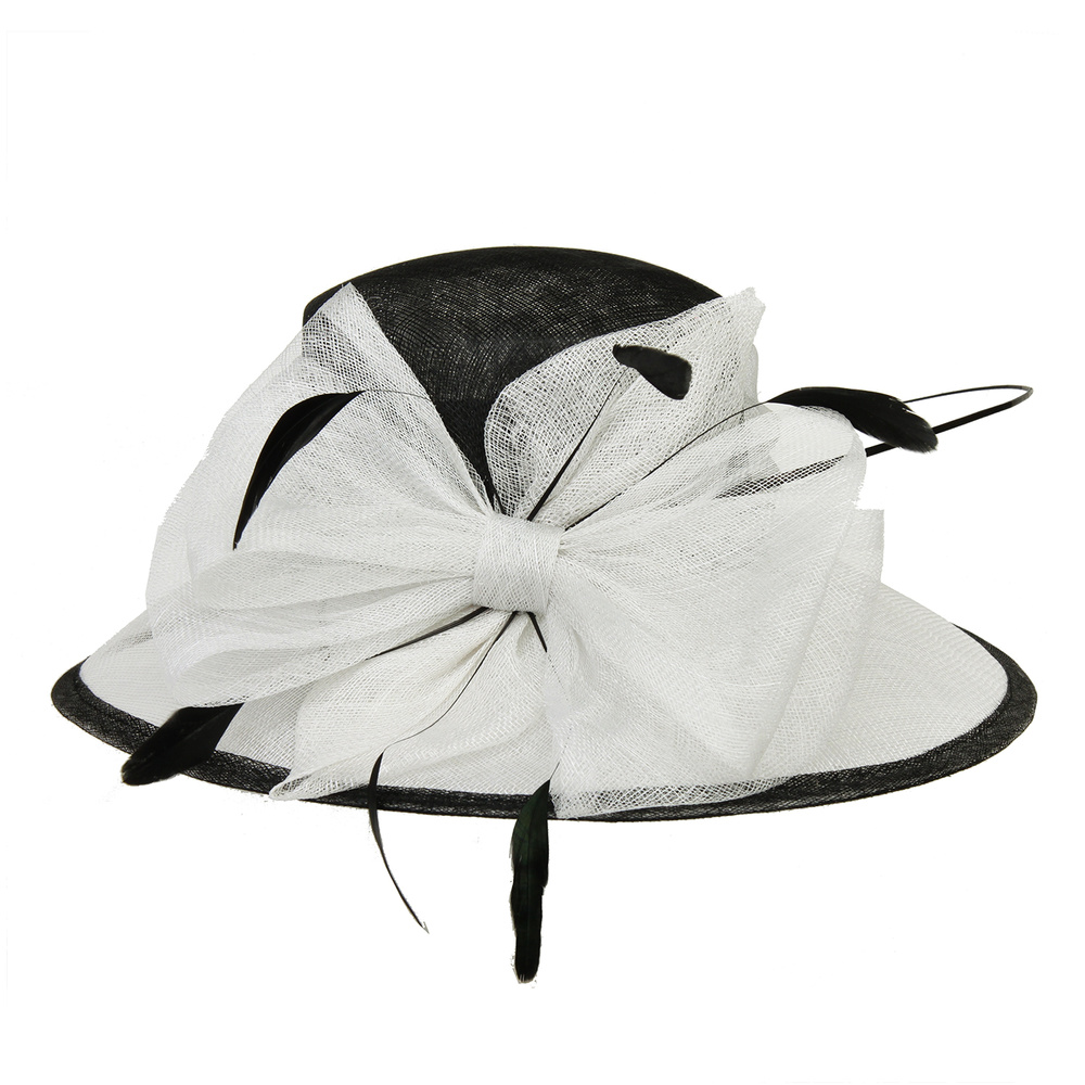 MEDIUM TWO TONE SINAMAY HAT W/FLORAL FEATHER CENTER