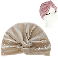 • VELVET SOFT PRE TIED KNOT PLEATED TURBAN WITH CRYSTAL RHINESTONE