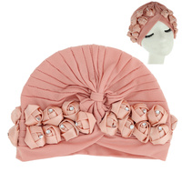 • CRYSTAL RHINESTONE STUDDED FLORAL PUFF SOLID COLOR TURBAN HEAD WRAP