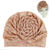 • FLORAL KNOT SOLID COLOR SEQUIN EMBELLISHED TURBAN HEAD WRAP