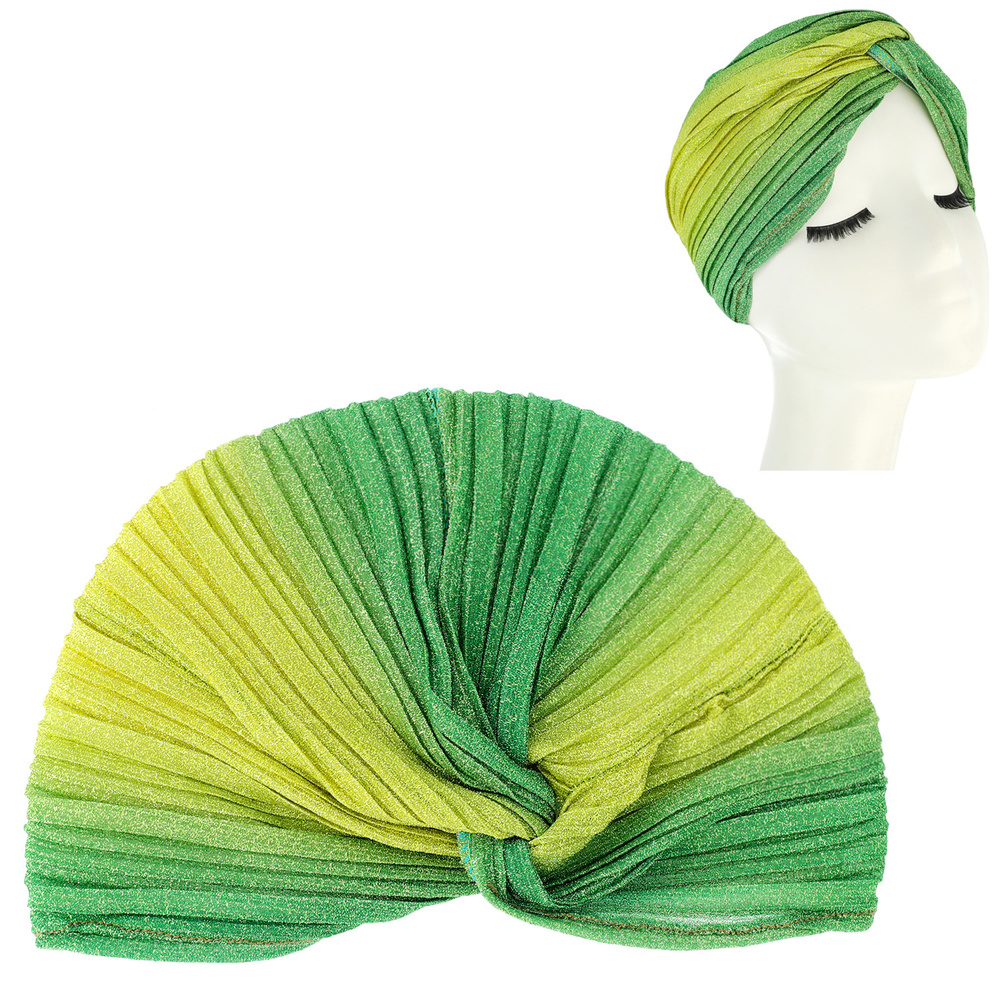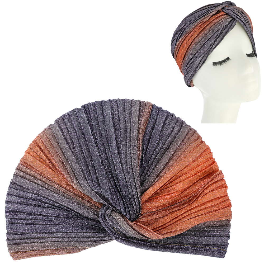 Two Tone Shimmering Glitter Pre Tied Knot Pleated Turban