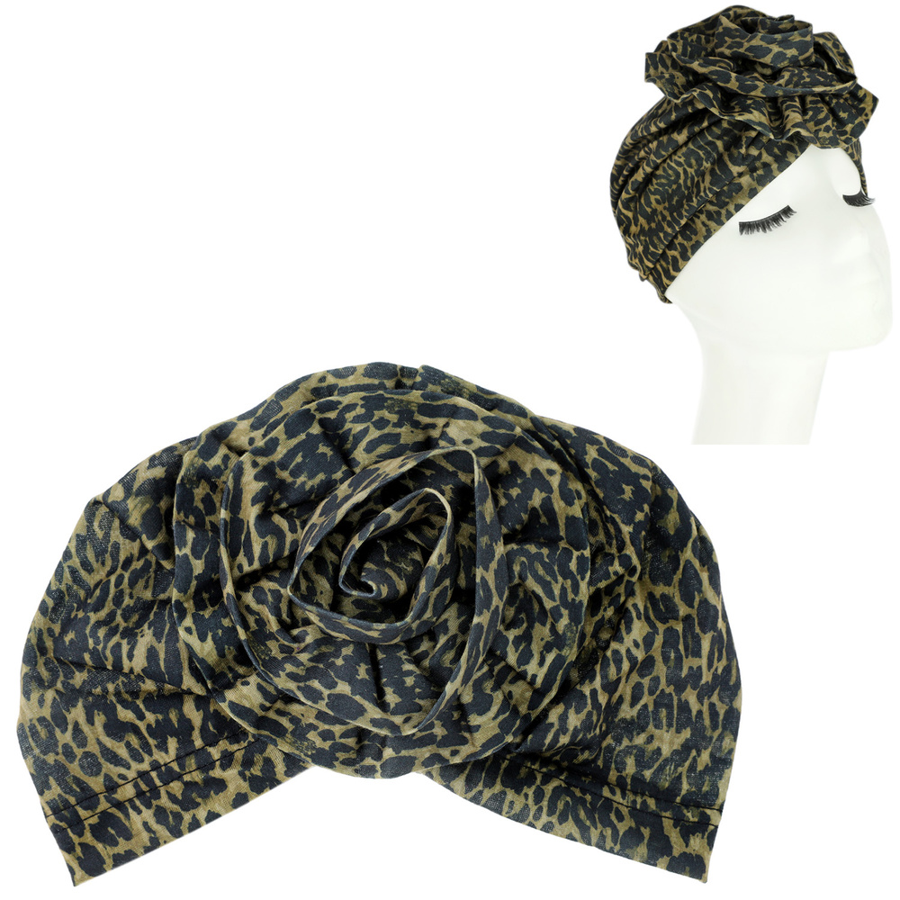 LEOPARD CHEETAH PRINT FLOWER KNOT HEADWRAP TURBAN
