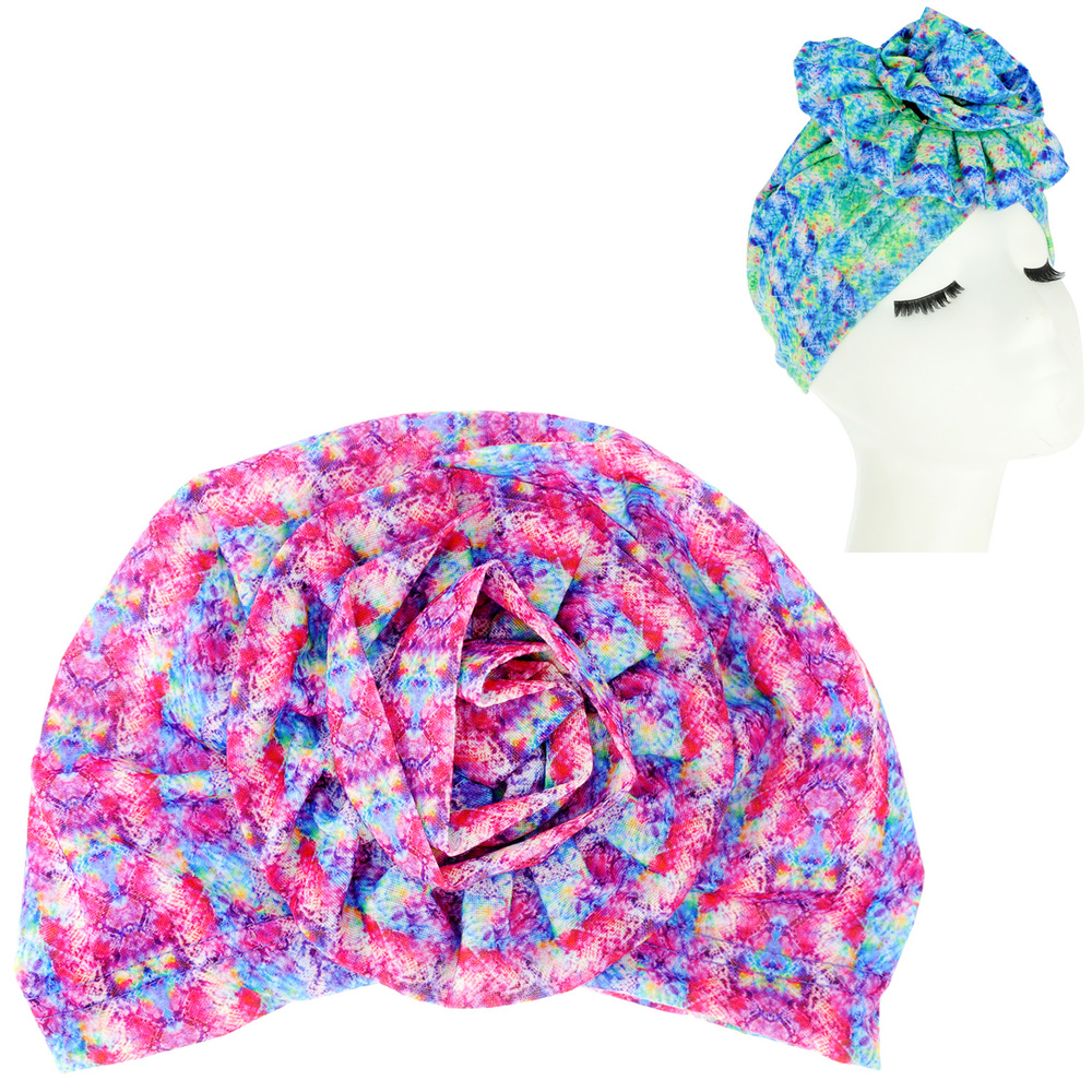 TIE DYE PRINT FLOWER KNOT HEADWRAP TURBAN