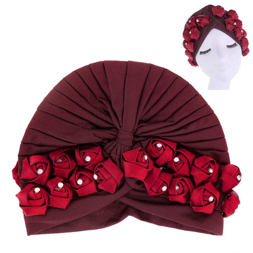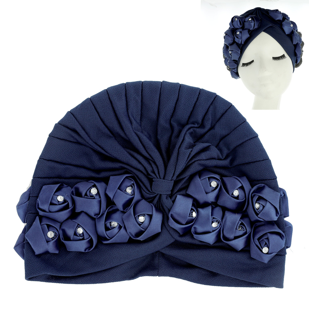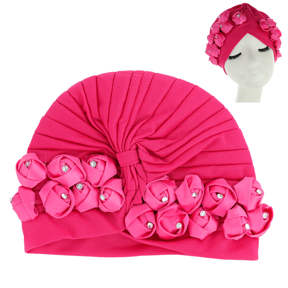 Floral Crystal Rhinestone Studded Solid Color Front Bow Turban Head Wrap