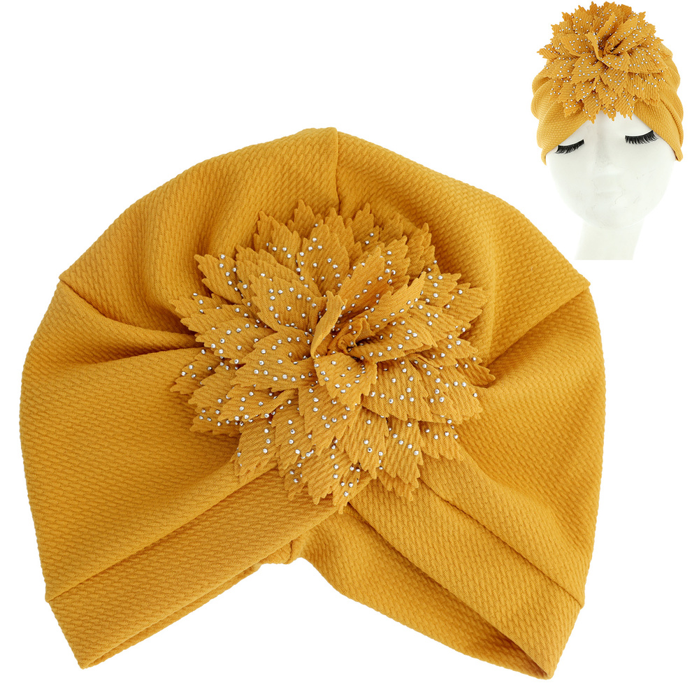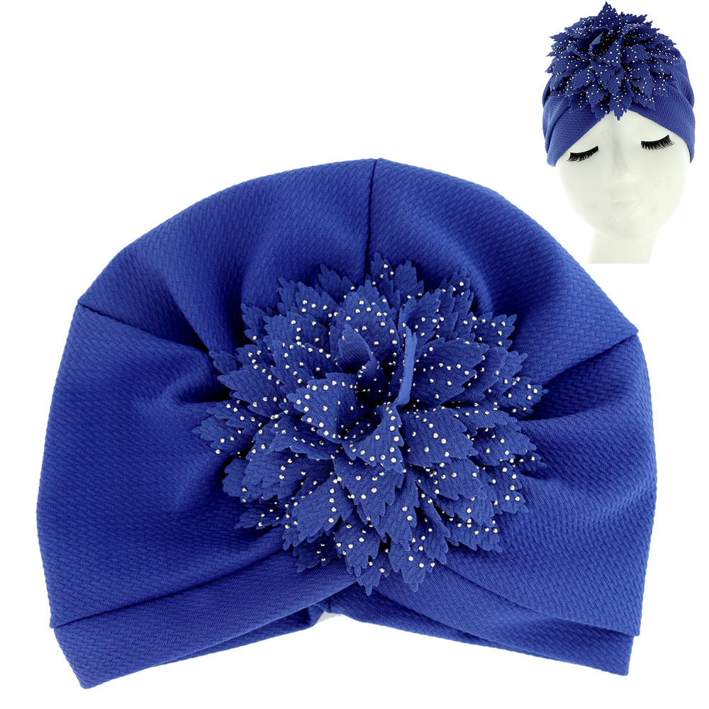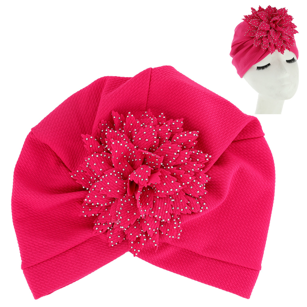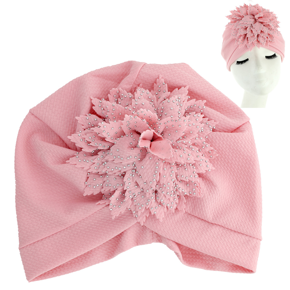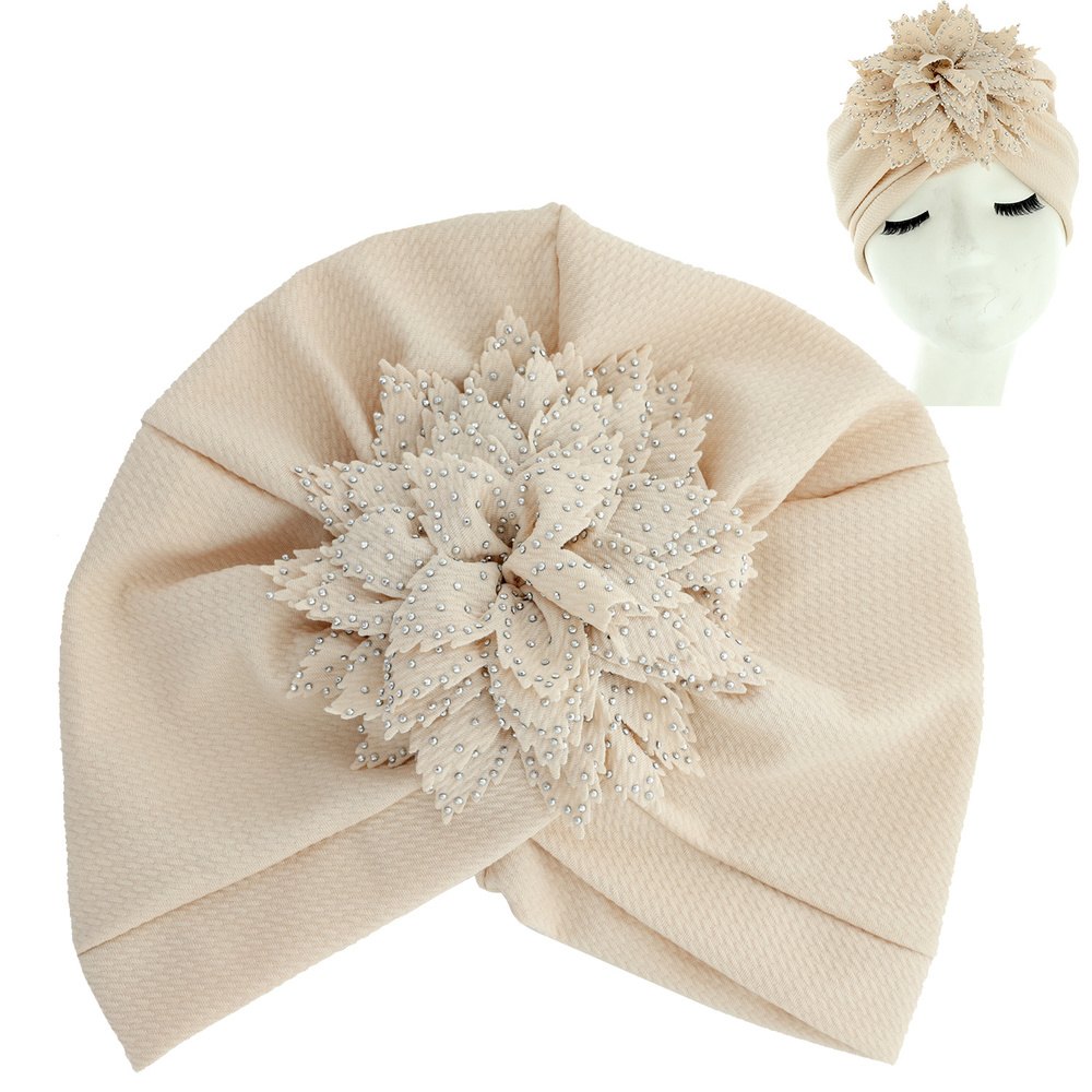 Crystal Rhinestone Studded Floral Puff Solid Color Turban Head Wrap