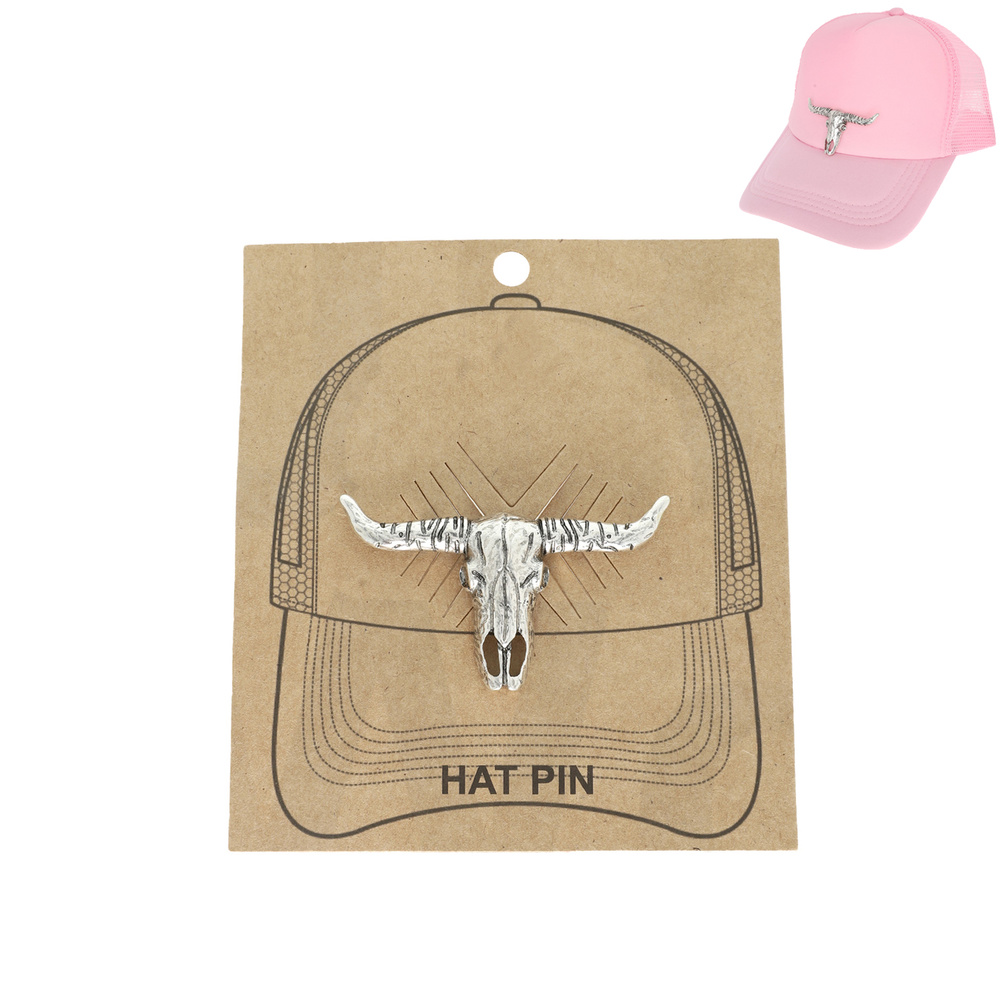 WESTERN STEERHEAD SKULL HAT PIN IN OXIDIZED SILVER-TONE METAL