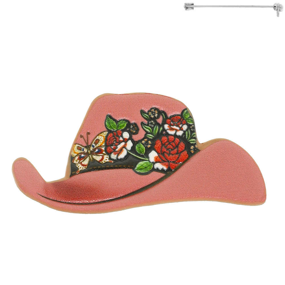 FLORAL THEMED IMPRESSED LEATHER COWBOY HAT PIN FOR HATS, JACKETS, OR BAGS