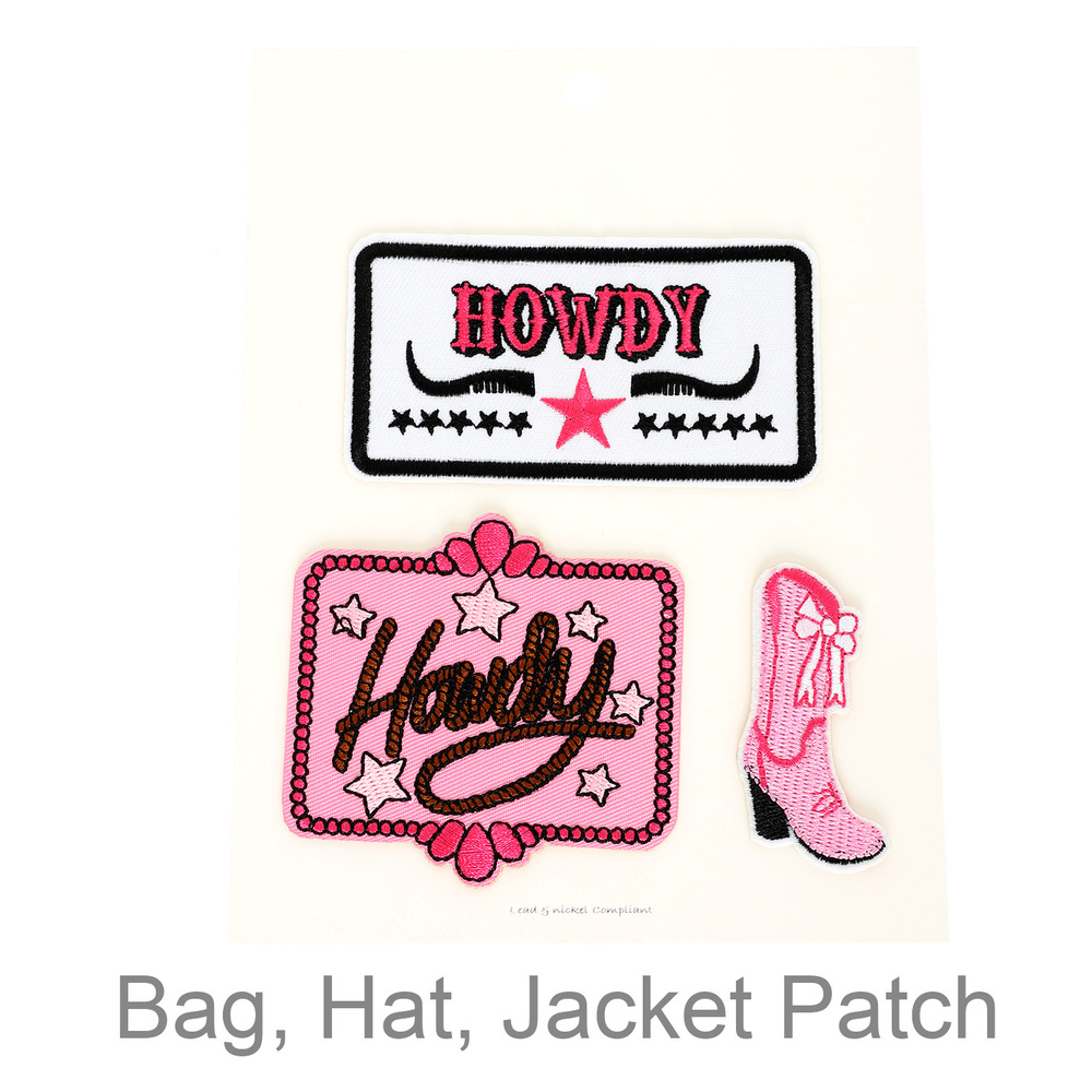 3PC WESTERN "HOWDY" THEMED DECORATIVE EMBROIDERY IRON-ON/ SEWN-ON PATCH SET FOR FOR HATS CLOTHES BAGS
