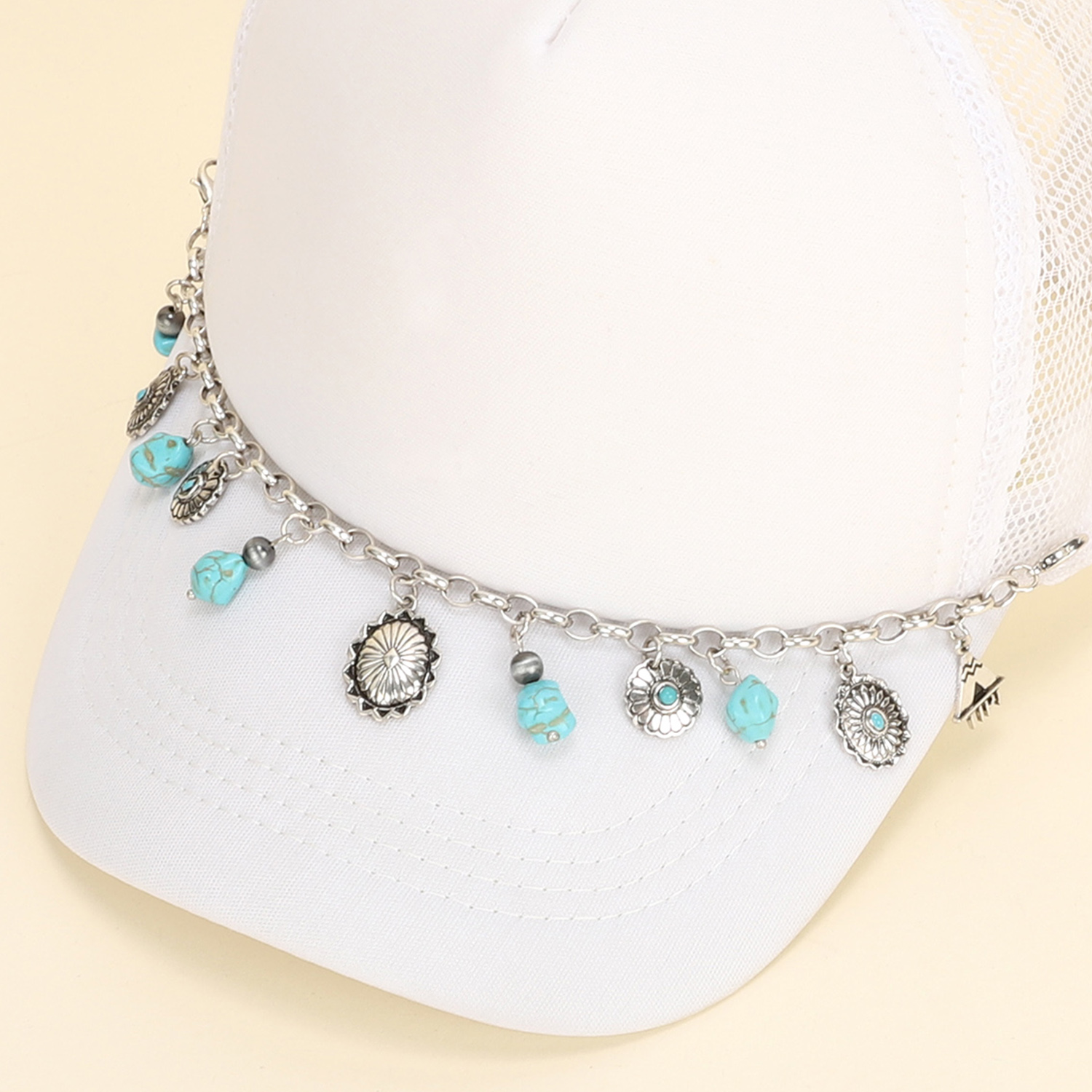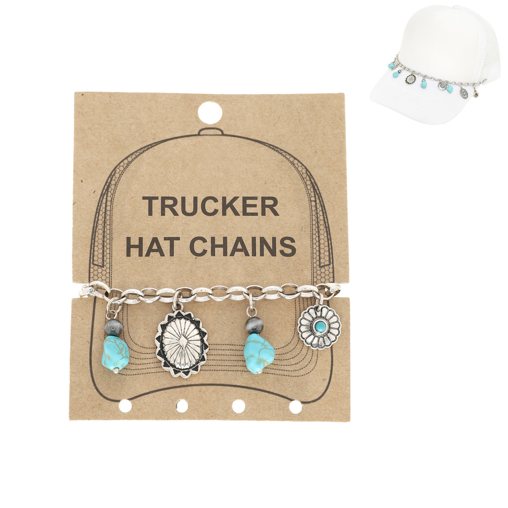 WESTERN FLORAL THEME TURQUOISE CHARM TRUCKER HAT CHAIN WITH LOBSTER CLAW CLASPS