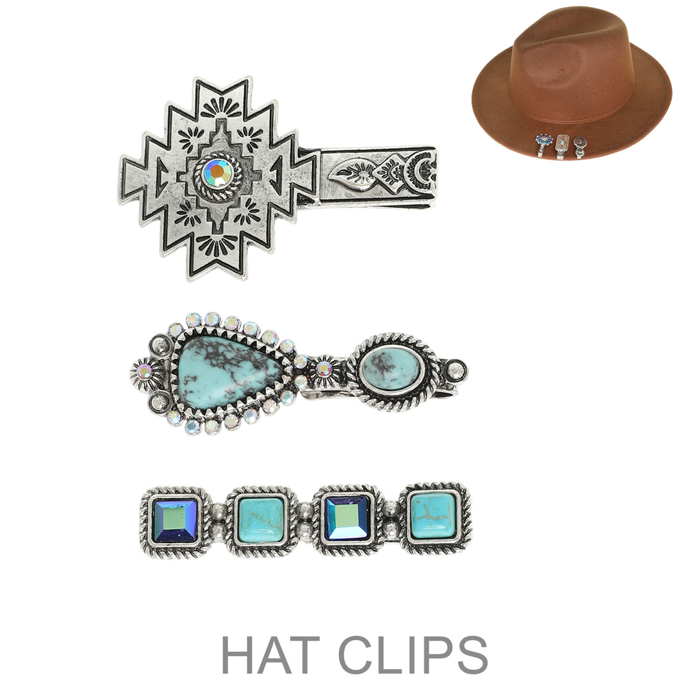 WESTERN TRIBAL INSPIRED SEMI PRECIOUS STONE BRIM HAT CLIP SET