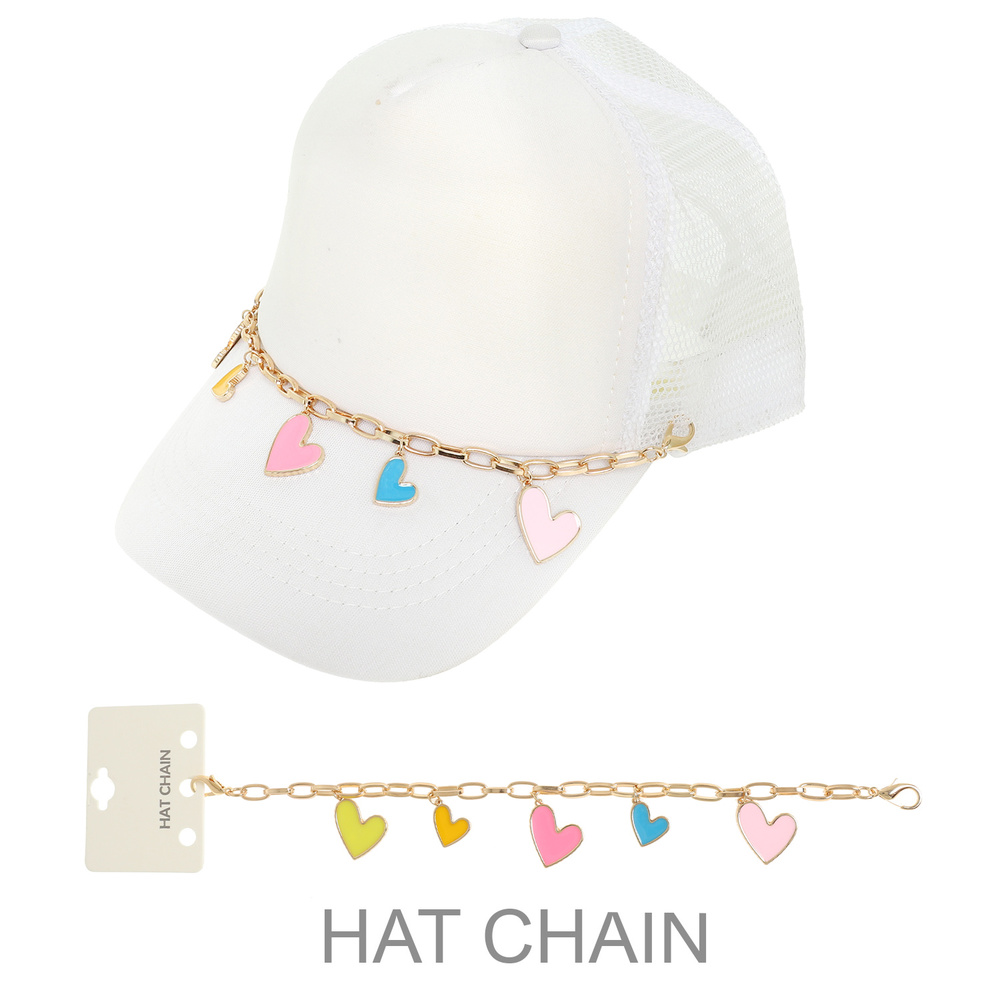 VALENTINES THEME HEART CHARM TRUCKER HAT CHAIN WITH LOBSTER CLAW CLASPS