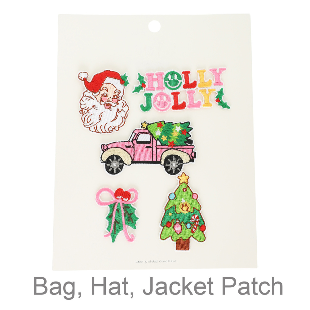 5PC CHRISTMAS THEMED EMBROIDERED IRON-ON/ SEWN-ON PATCH SET FOR CAPS HATS BAGS BACKPACKS CLOTHES GEAR