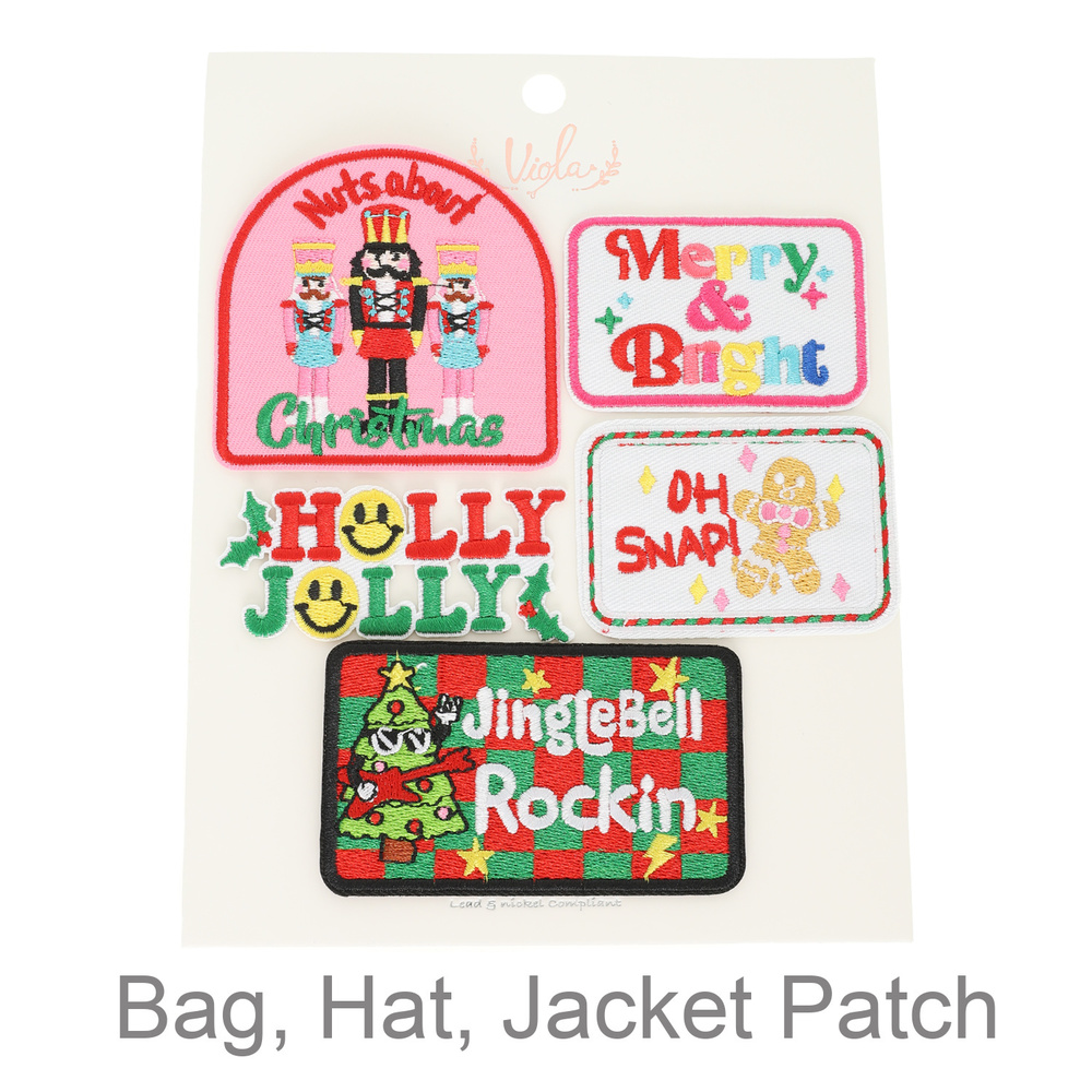 5PC CHRISTMAS THEMED EMBROIDERED IRON-ON/ SEWN-ON PATCH SET FOR CAPS HATS BAGS BACKPACKS CLOTHES GEAR