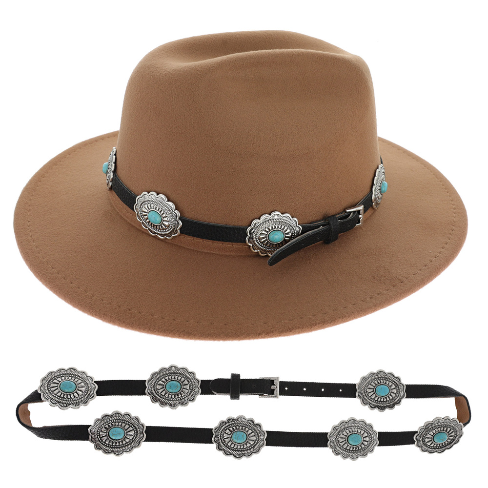 Western Oval Scalloped Turquoise Semi Stone Concho Leather Hat Band