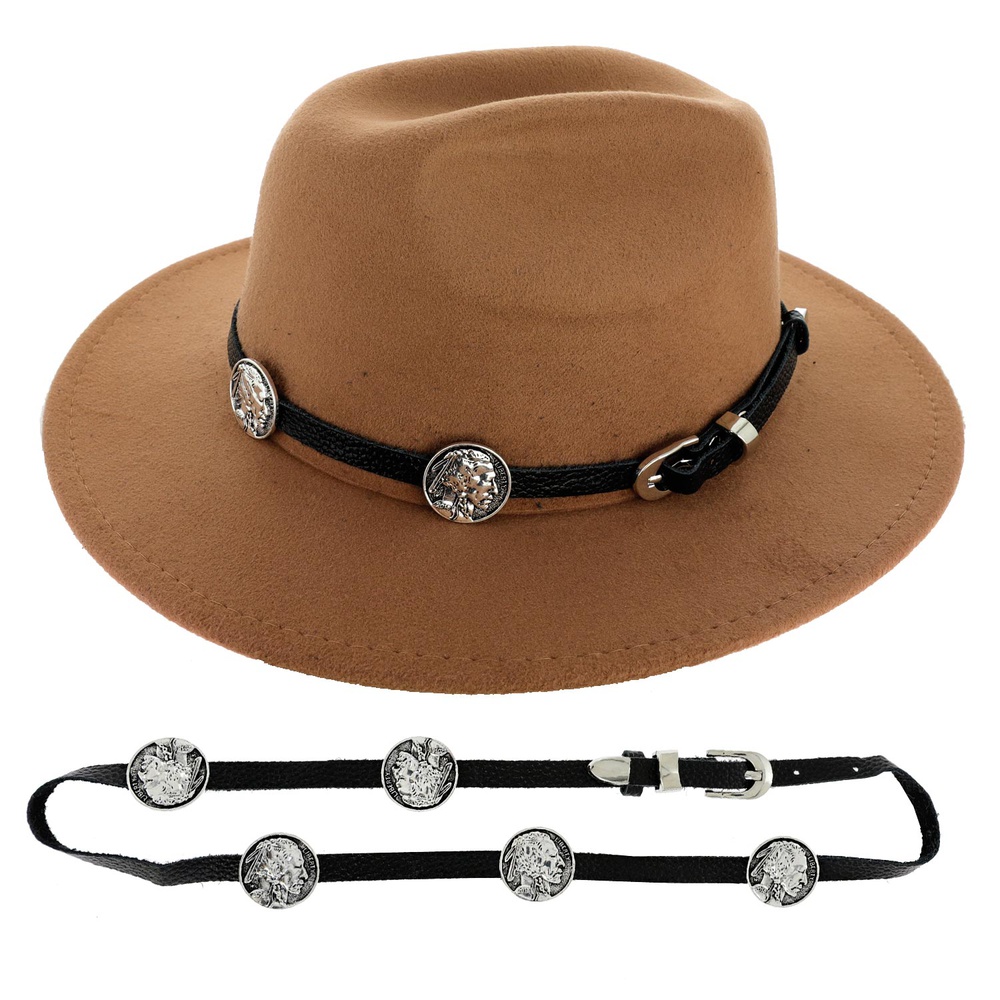 WESTERN BUFFALO DOLLAR COIN LEATHER BUCKLE HAT BAND