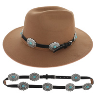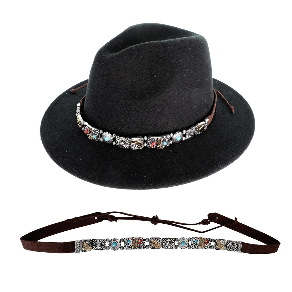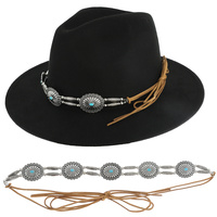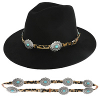 Western Turquoise Semi Stone Cowboy Boots And Hat Leather Hatband