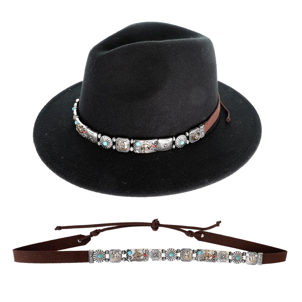WESTERN TURQUOISE SEMI STONE RODEO AND HORSESHOE LEATHER HATBAND IN MULTI-TONE METAL ****HAT NOT INCLUDED***