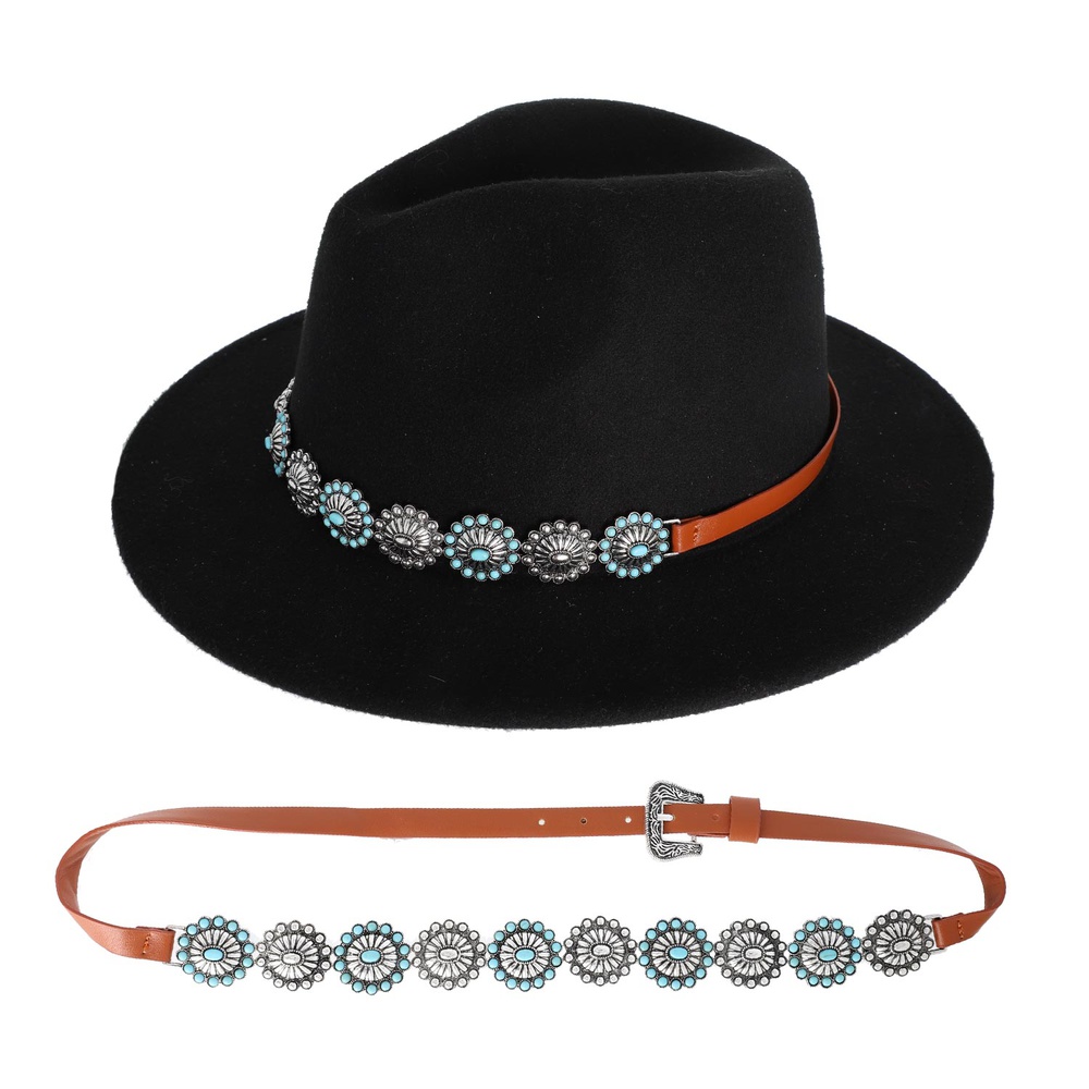 WESTERN TURQUOISE SEMI STONE OVAL CONCHO LEATHER BUCKLE HAT BAND