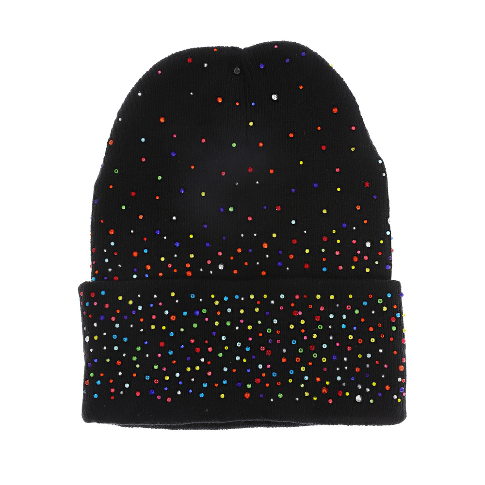 CRYSTAL RHINESTONE STUDDED RIBBED BEANIE WINTER HAT