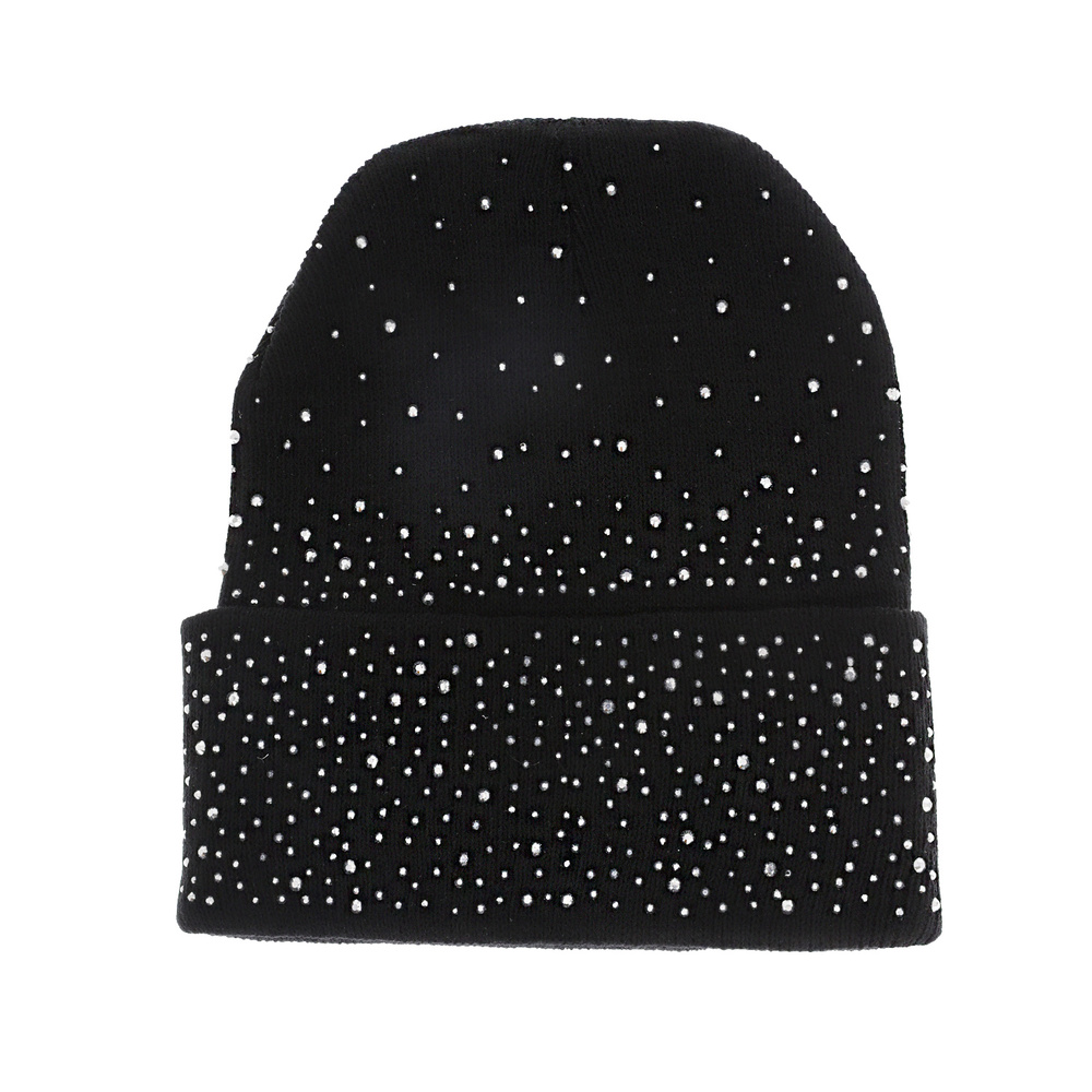 CRYSTAL RHINESTONE STUDDED RIBBED BEANIE WINTER HAT