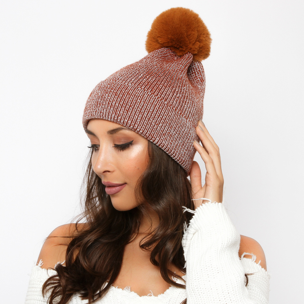 ACRYLIC RIBBED BEANIE W/ POM POM