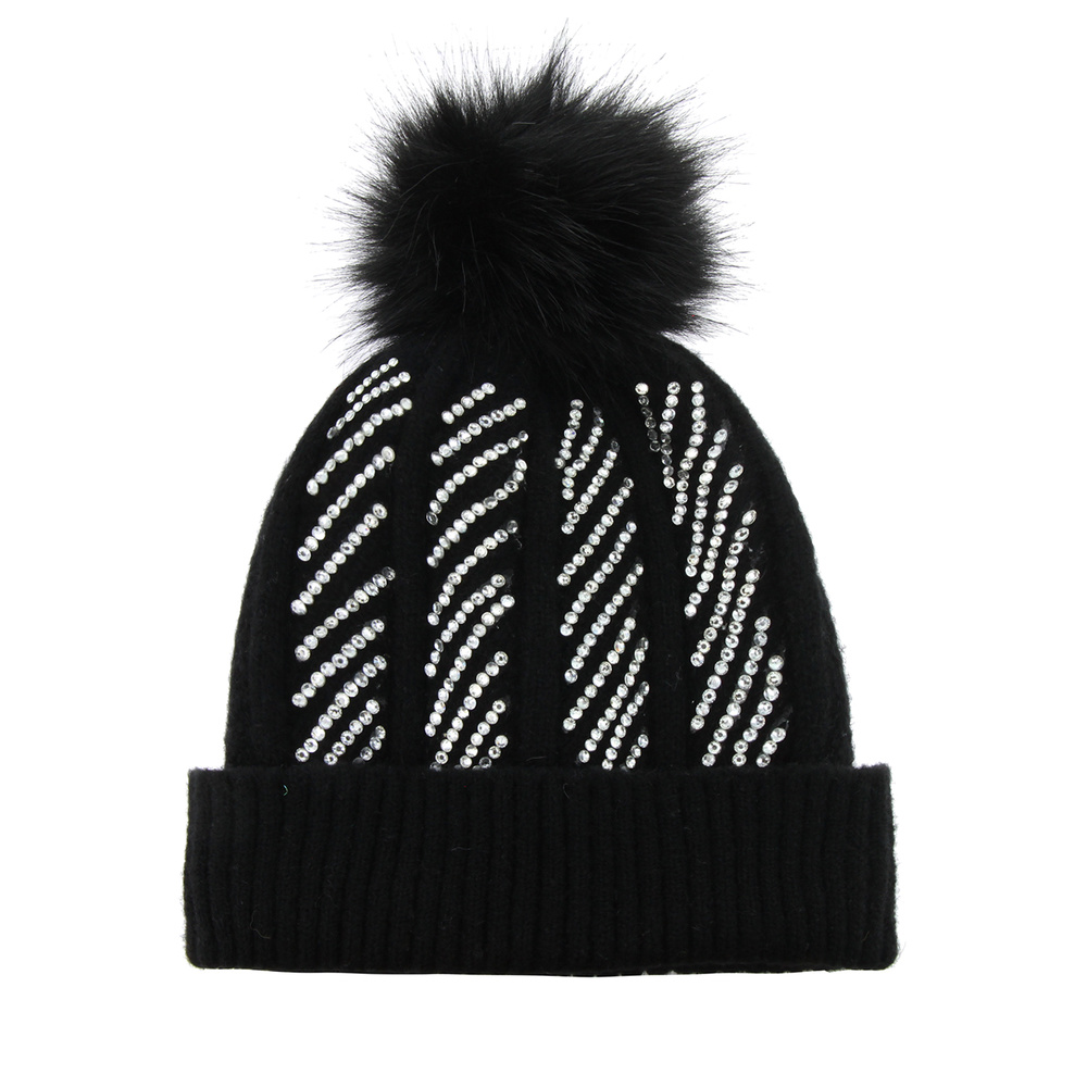 Foldover Beanie W/rhinestone & Pom
