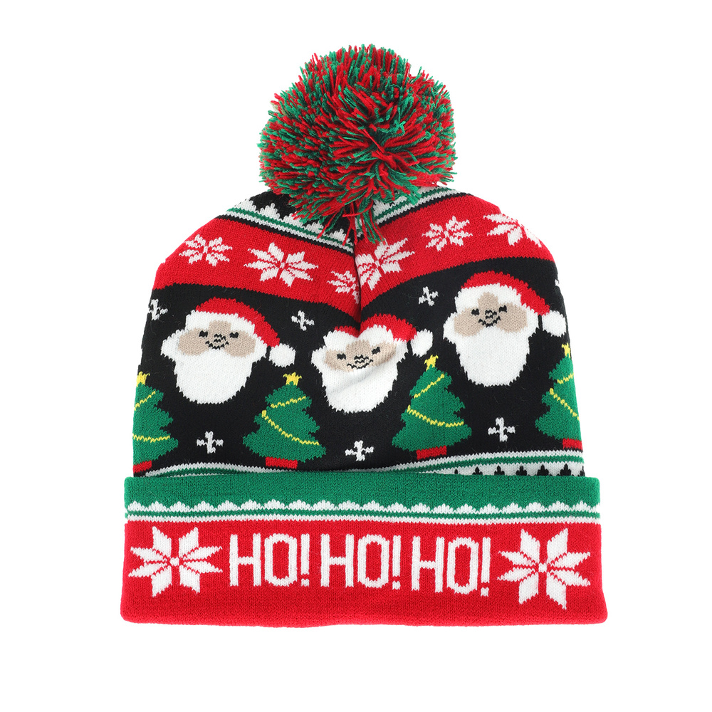 CHRISTMAS HO HO HO SANTA TREE BEANIE WITH POM POM