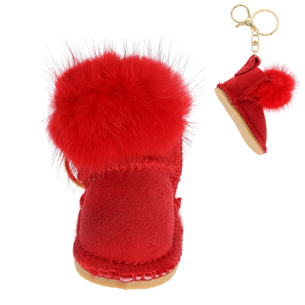 SHEARLING WINTER BOOT KEYCHAIN WITH DUAL SPLIT RING AND LOBSTER CLAW CLASP
