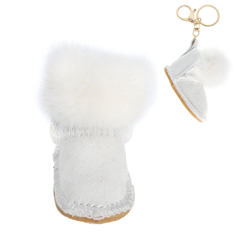 SHEARLING WINTER BOOT KEYCHAIN WITH DUAL SPLIT RING AND LOBSTER CLAW CLASP