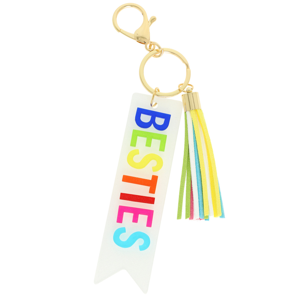 Besties Long Strip Glitter Acrylic Fringe Keychain