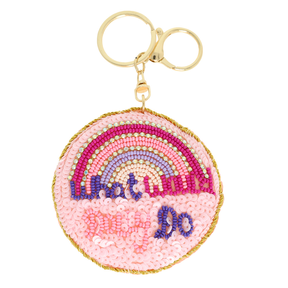 "WHAT WOULD DOLLY DO" SEQUIN RHINESTONE BEAD EMBROIDERED KEYCHAIN