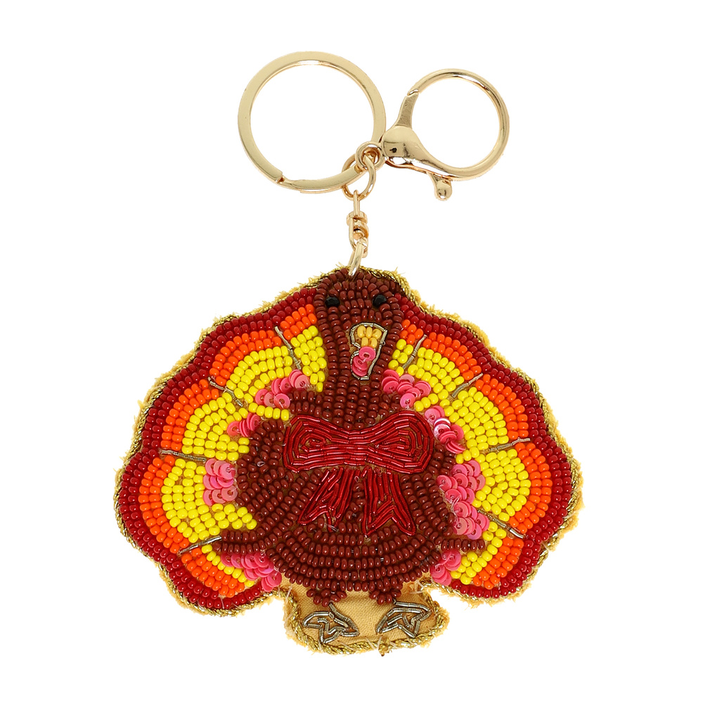 THANKSGIVING TURKEY SEQUIN BEAD EMBROIDERED KEY CHAIN