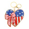 USA FLAG THEMED SEQUINS SEED BEADED RIBBONED HEART KEYCHAIN WITH SPLIT RING AND LOBSTER CLASP